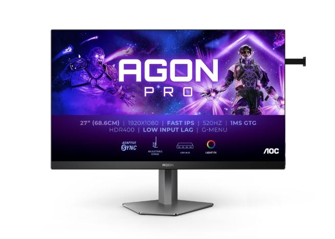 Монитор AOC AG276FK, 27' Fast IPS WLED, 1920x1080@520Hz, 0.5ms GtG, 0.3ms MPRT, 400cd m/2, 1000:1, 80M:1 DCR, Adaptive Sync, FlickerFree, Low Blue Light, 5Wx 2, Tilt, Height Adjust, Pivot, Swivel, 2xHDMI, 2xDP, USB hub