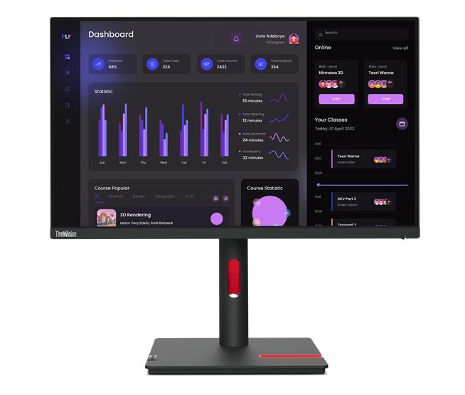 ThinkVision T24i-30 е страхотен 23.8-ичнов монитор, който разполага с редица иновации, които ви гарантират подобрен работен процес и по-бързо изпълнение на всяка ваша задача на работа. Неговият 23,8-инчов FHD IPS екран с широка цветова гама от 99% sRGB ви гарантира цветове с невероятна жизненост и точност, дори когато гледате екрана от широк ъгъл. Можете да настроите монитора за по-удобно и приятно гледане с функциите за накланяне, повдигане и завъртане чрез ергономичната стойка. С 90% площ на екрана, той е има практически безрамков 3-странен дизайн, който ви помага да останете фокусирани върху дисплея по-лесно и да се разсейвате много по-малко. Интегрираната технология Natural Low Blue Light намалява вредната синя светлина, като същевременно предоставя цветове с висока точност. В допълнение, T?V Rheinland Eye Comfort сертификатът на монитора ThinkVision T24i-30 ви позволява да правите повече, като предпазва очите ви от умора дори по време на дълги часове на работа. Можете също така да преглеждате повече данни и да извършвате много задачи по-ефективно с поддръжката на няколко монитора. Този монитор включва цял свят от функции, без да оказва влияние върху околната среда, като следва най-новите разпоредби на TCO 9.0. Мониторът ThinkVision T24i-30 е мощност, създадена да превърне работата ви в удоволствие.