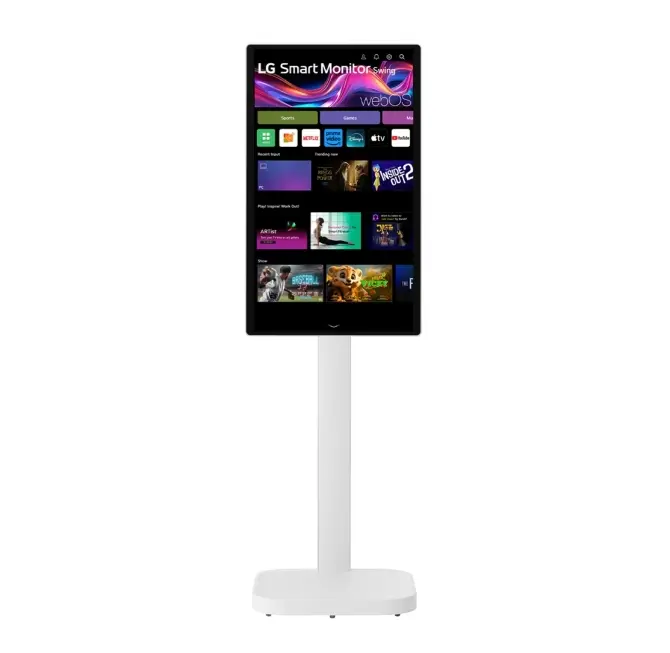 Насладете се на изключителна гъвкавост с LG Smart Monitor с сензорен екран, оборудван с подвижна стойка за идеално регулиране под различни ъгли и позиции. Насладете се на плавно управление чрез сензорен екран, голям 31,5-инчов дисплей и зашеметяващо 4K качество на картината за работа и забавление. Потопете се в живи цветове и детайли с нашия 31,5-инчов 4K UHD IPS дисплей. Интуитивният сензорен екран предлага безпроблемно управление, позволявайки бърз достъп до настройки. Насладете се на ясни изображения и точни цветове благодарение на широката цветова гама от 95% DCI-P3 и яркост от 350 нита. Изживейте зашеметяваща яснота и реалистични изображения, които вдъхват живот на вашето съдържание. Нашият интелигентен монитор е снабден с гъвкава стойка, която позволява накланяне, завъртане, регулиране на височината и портретен режим за лесно настройване на ъгъла. Дебелата квадратна основа осигурява стабилност, а елегантният сиво-бял цвят се вписва перфектно във всеки дом или работно място. Със здравите си въртящи се колела, можете без усилие да го местите където пожелаете, като същевременно се наслаждавате на плавна и стабилна мобилност. Освен това, скритият адаптер държи кабелите добре прикрити, осигурявайки чист и организиран вид. Три USB-C порта позволяват показване, прехвърляне на данни и зареждане на свързано устройство (до 65 W), което позволява поддръжка за вашия лаптоп едновременно чрез един кабел. LG Switch оптимизира вашия монитор и за работа, и за ежедневие. Можете бързо да навигирате и избирате функции с клавиатура и мишка, докато безпроблемно превключвате между вашия компютър и webOS с клавишни комбинации. Освен това лесно разделяте екрана на до 6 области, променяте темата или стартирате видео разговор с бутон за бърз достъп. Открийте удобството на функцията Quick Control на LG Smart Monitor Swing, който осигурява лесен достъп до менютата чрез лесни действия с клавиатура и мишка. Той също така позволява безпроблемно превключване между компютър и webOS с помощта на клавишни комбинации. Споделяйте без усилие съдържание от вашето смарт устройство към монитора с AirPlay 2 (за устройства на Apple) и Screen Share (за устройства с Android). Свържете се мигновено и се насладете на безпроблемно гледане и аудио изживяване на по-голям екран само с няколко докосвания. webOS ви позволява отдалечен достъп до вашия компютър и облачен компютър чрез функцията Remote PC. Тази функционалност ви позволява да използвате различни услуги за домашен офис, включително видеоконферентна връзка и базирани в облака приложения, и то без компютър. Възползвайте се от най-новите функции и софтуер с годишни надстройки – до четири пъти за пет години. Носител на наградата за иновации на CES в категорията за киберсигурност, webOS защитава вашата поверителност и данни с всяка актуализация. Благодарение на webOS се наслаждавайте на безпроблемен достъп до разнообразно съдържание чрез приложения като Netflix, Prime Video, Disney+, YouTube, Apple TV. Получавайте персонализирани препоръки, разглеждайте приложения като Sports, Игри и лесно управлявайте всичко с дистанционно или докосване. Тристранният безграничен дизайн на тънкия бял корпус подобрява потапянето, а стерео високоговорителите 5Wx2 осигуряват кристално чист звук за максимално изживяване при гледане. Функцията за регулиране на яркостта открива източниците на светлина в помещението и автоматично н