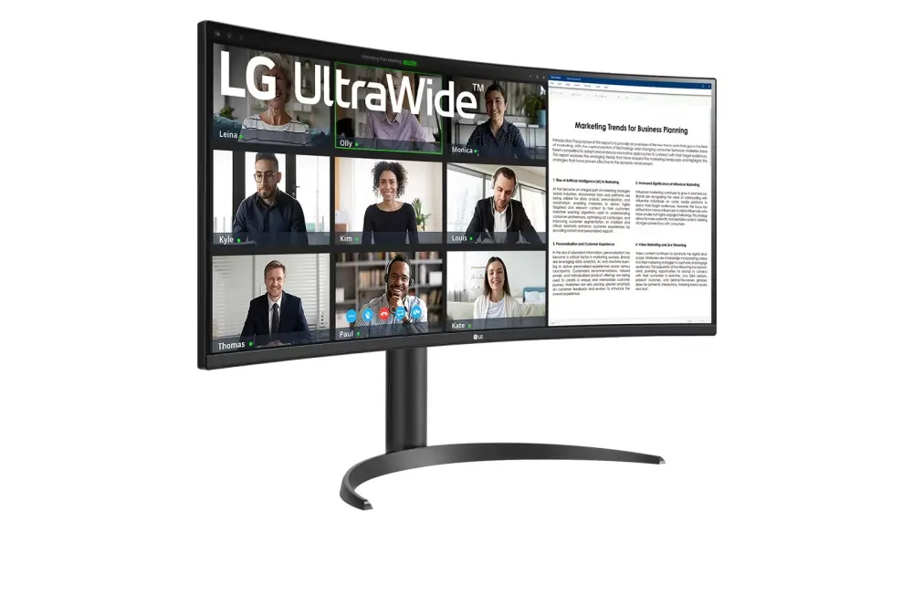 UltraWide QHD (3440x1440) с извивка 1800R и съотношение на страните 21:9 е страхотен за работа, тъй като може да показва различни програми едновременно. 34WR55QK ви позволява да виждате множество съдържание от два компютъра с функцията „Картина до картина“ (PBP) за ефективна работа. Приложението LG Switch помага да оптимизирате монитора в съответствие с вашата работа и живот. Лесно разделяте екрана на до 6 области, променяте темата или стартирате видео разговор с бутон за бърз достъп. HDR технологията вече се прилага към различно съдържание. Този монитор е съвместим с индустриалния стандарт HDR10 (High Dynamic Range), базиран на sRGB 99% цветова гама, поддържащ специфични нива на цвят и яркост, които позволяват на зрителите да се наслаждават на драматичните цветове на съдържанието. USB Type-C портовете позволяват показване, прехвърляне на данни и зареждане на свързано устройство (до 65 W), позволявайки поддръжка за вашия лаптоп едновременно чрез един кабел. Този монитор предлага USB Type-C, DisplayPort, HDMI и USB (Downstream3.0), съвместими със съществуващи устройства за плавно изображение и изходен порт за слушалки, поддържащ хардуерна свързаност. Постигнете оптимално позициониране с ергономичната стойка: лесно монтиране с едно щракване, както и лесно регулиране на височината и наклона за вашето идеално изживяване при гледане. Режимът за четене регулира температурата на цвета и яркостта, за да намали умората на очите и да осигури комфорт при четене на документи на монитор. Защита от трептене намалява невидимото трептене на екрана, което помага за намаляване на напрежението в очите. Той осигурява комфортна работна среда за дълго време.