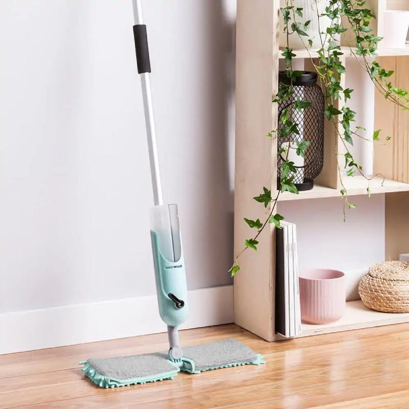 Моп спрей е удобно и ефективно решение за бързо и лесно почистване. Оборудван с два контейнера за течност, които позволяват смяна на почистващия препарат според типа повърхност, без нужда от кофи и излишно усилие. Двустранна микрофибърна кърпа. Обърнете я с едно движение и продължете почистването без прекъсване. Подходящ за почистване и полиране на подове. Гъвкава почистваща глава, която достига лесно под мебели и в ъгли. Винаги под ръка, идеален за бързо почистване.