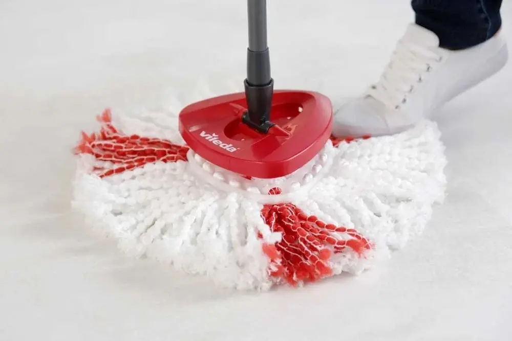 Моп за под VILEDA 2IN1 TURBO e eфективно премахва мръсотията, като отстранява над 99% от бактериите само с вода, благодарение на усъвършенстваната технология от 100% микрофибър.