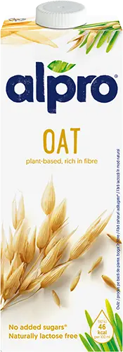 Овесена напитка Alpro с добавени калций и витамини. Има мек, леко сладък вкус, богата на фибри, без добавени захари.
