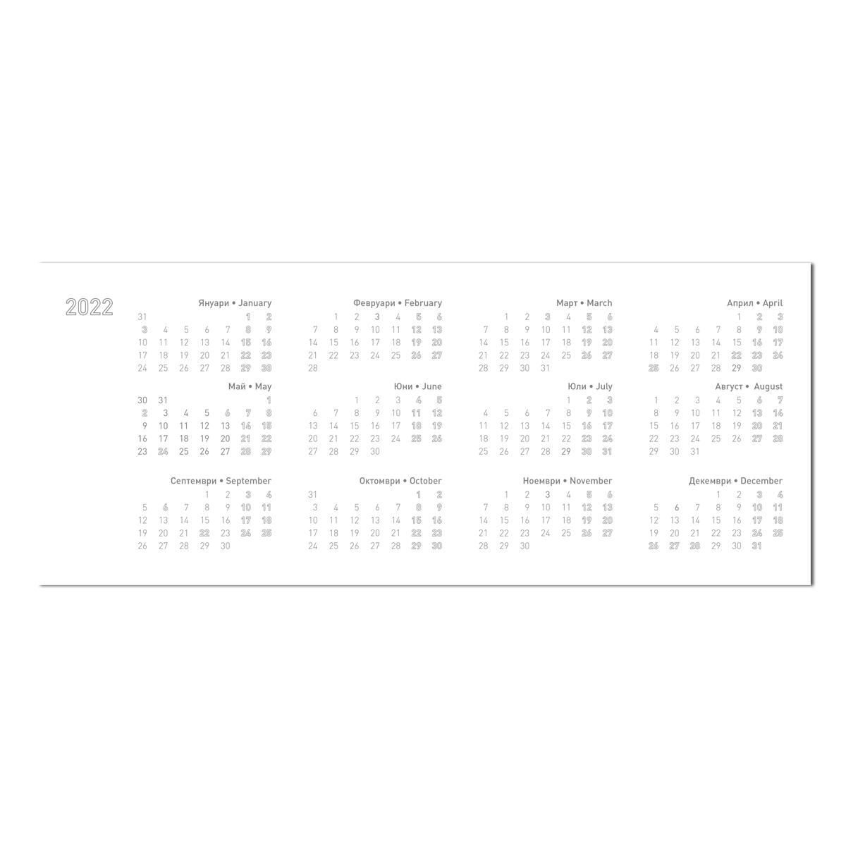 Настолен календар HK 1 стилно и практично решение за всеки офис или дом. С елегантна корица от финландски опаковъчен картон и календариум на два езика – български и английски, този календар съчетава функционалност и изтънчен дизайн.
