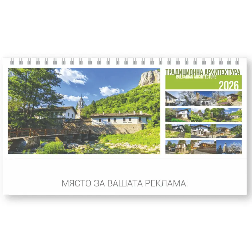Настолен календар пирамидка Архитектура е елегантен настолен календар пирамидка с готов дизайн, вдъхновен от впечатляващата архитектура по света. Всеки месец представя различни архитектурни шедьоври – от древни сгради до съвременни модерни постройки, които вдъхновяват с красота и стил.