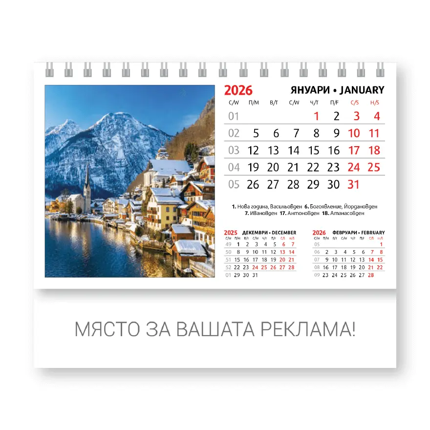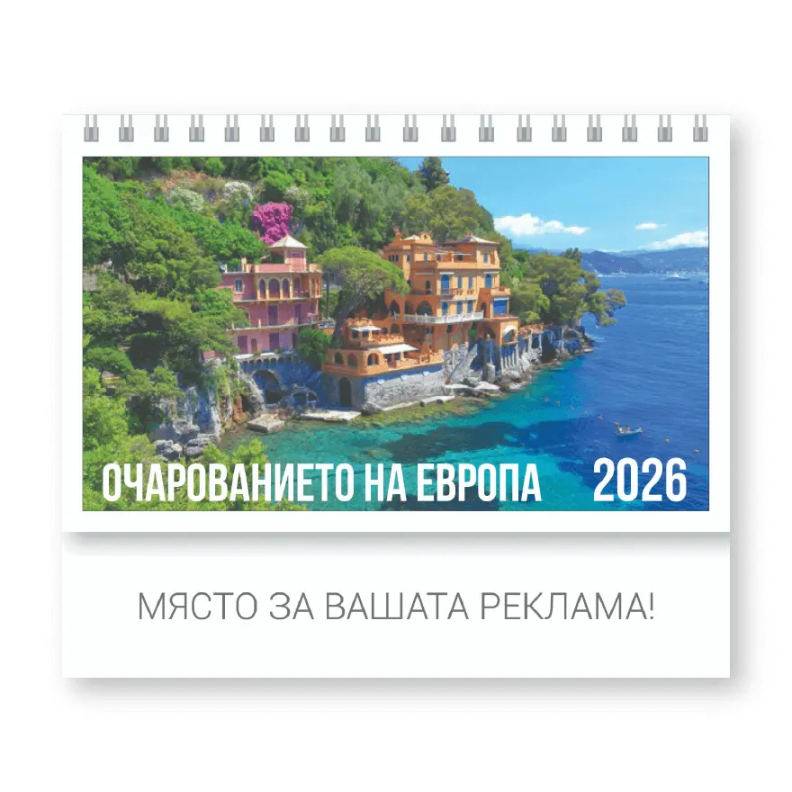 Настолен календар пирамидка oчарованието на Европа с готов дизайн, който представя впечатляващи пейзажи от Европа. Идеален за офиса, бюрото или домашната маса, този календар съчетава стил, практичност и висококачествени материали.