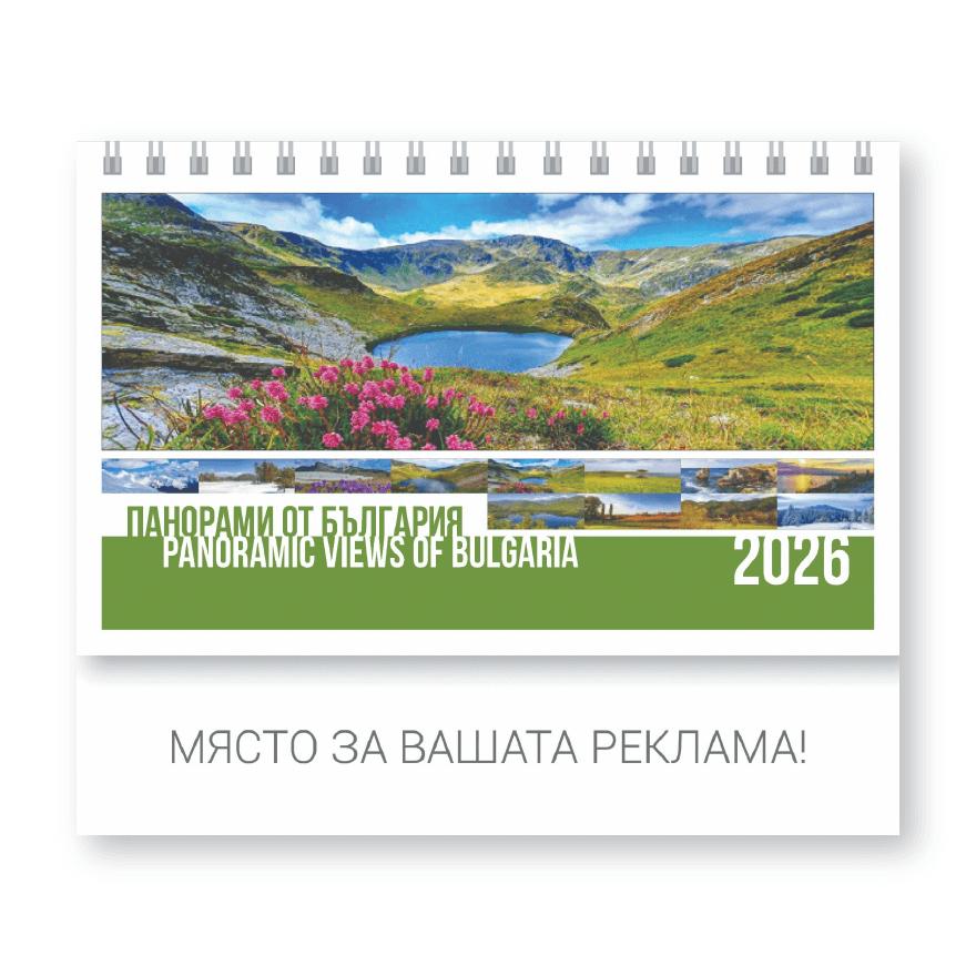 Настолен календар пирамидка с готов дизайн, който представя впечатляващи панорамни гледки, създавайки усещане за простор и вдъхновение на работното място.
