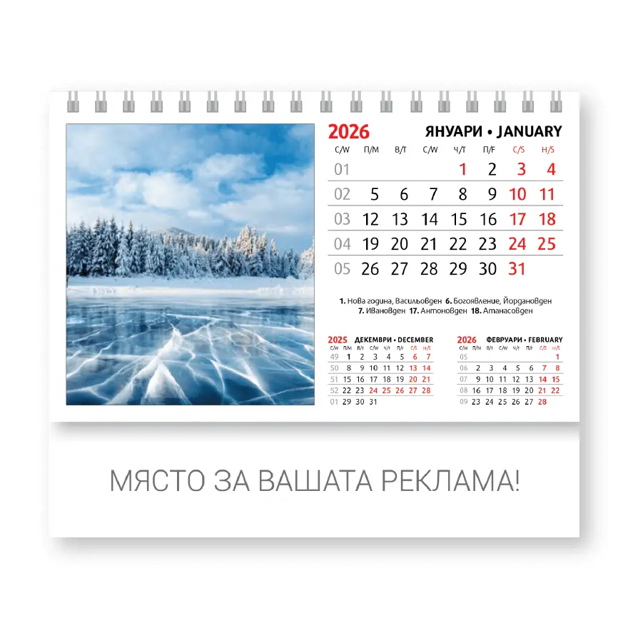 Настолен календар пирамидка пейзажи с готов дизайн, който представя красиви пейзажи, създавайки уют и вдъхновение на работното място. Идеален за офиса, бюрото или домашната маса, този календар съчетава стил, практичност и висококачествени материали.