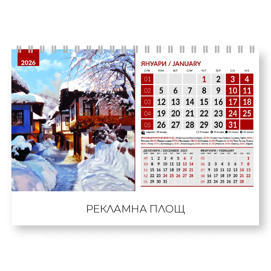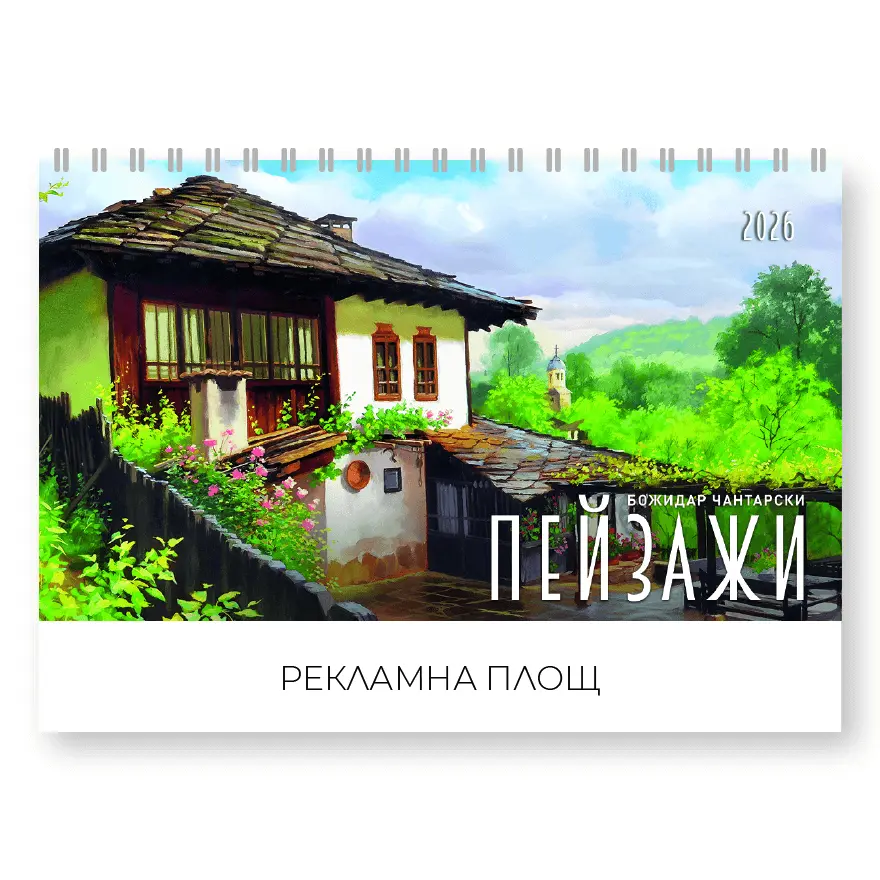 Настолен календар пирамидка пейзажи с готов дизайн, включващ красиви пейзажи, които вдъхновяват и създават усещане за спокойствие през цялата година. Двуезичният календариум на български и английски език съдържа отбелязани официални празници и именни дни, което го прави удобен и практичен за ежедневна употреба.
