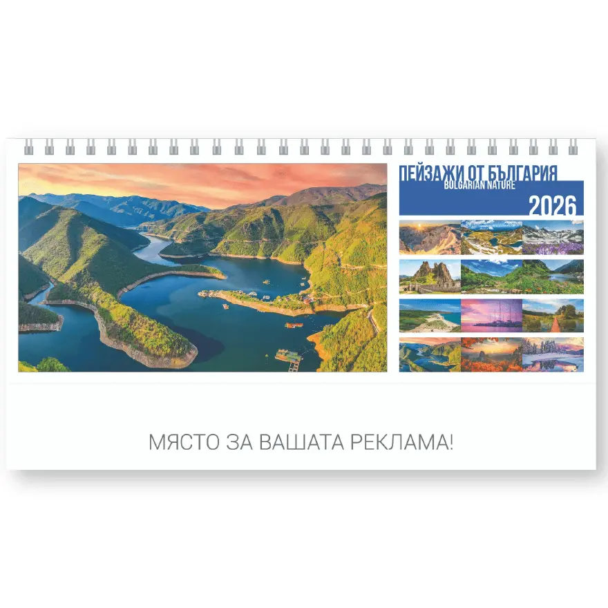 Настолен календар пирамидка пейзажи от България с готов дизайн, представящ най-впечатляващите пейзажи от България, като планини, езера, морски гледки и природни забележителности. Всеки месец разкрива ново вдъхновение от родната природа, съчетавайки практичност и естетика.