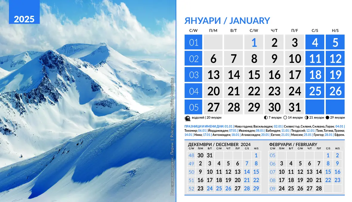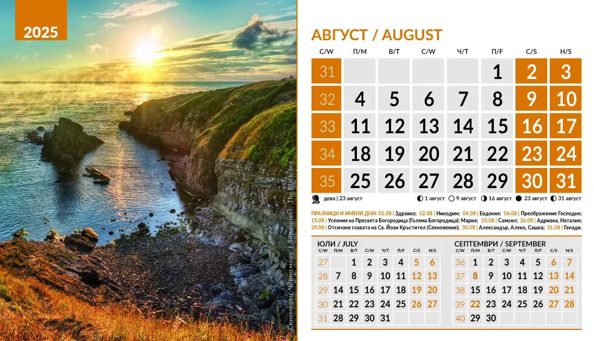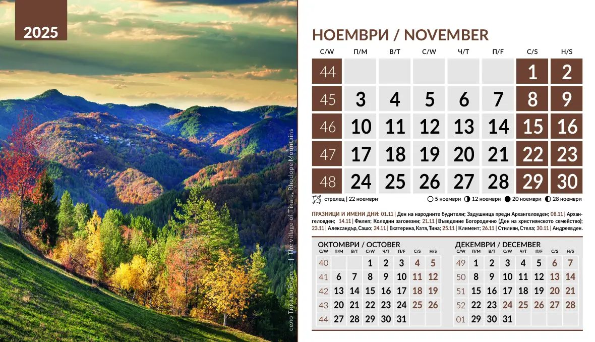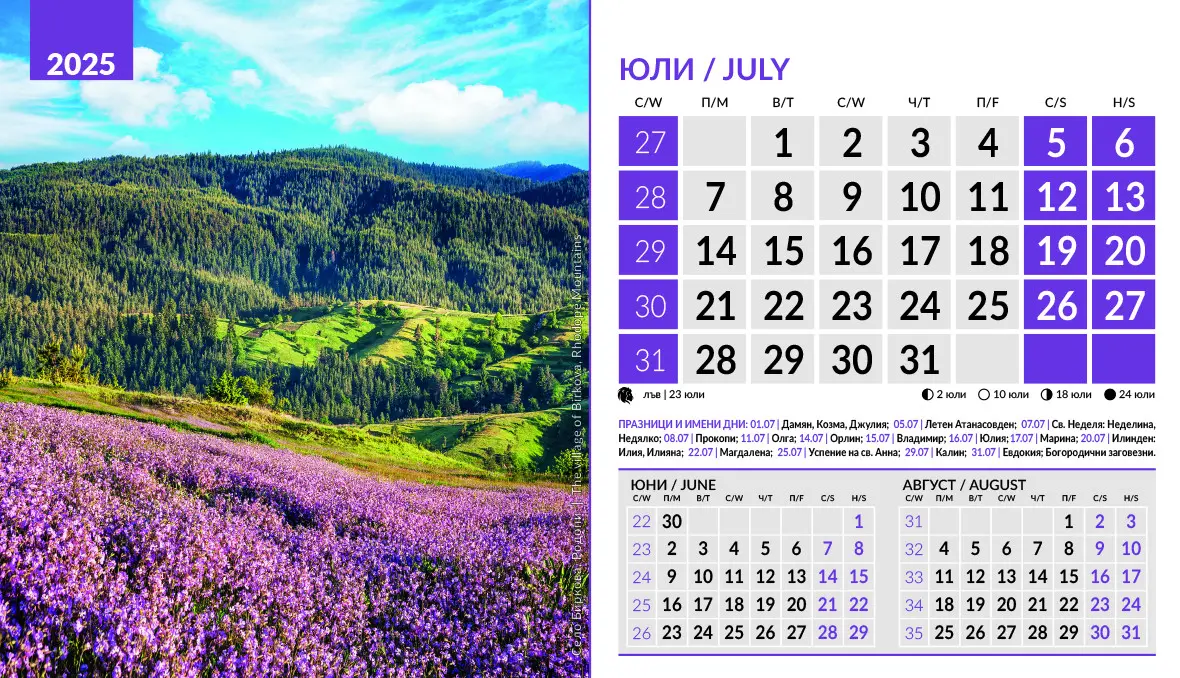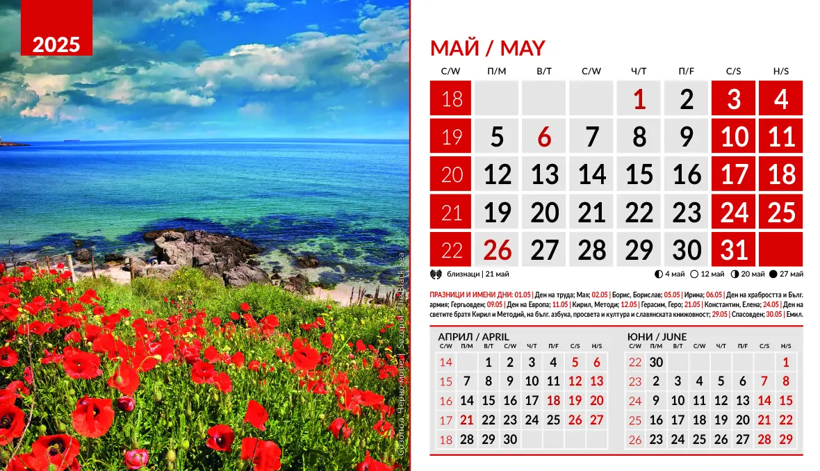Настолен календар пирамидка Природа с готов дизайн, вдъхновен от красотата на природата. Всеки месец представя различен природен пейзаж – гори, езера, планини и цветни поля, които носят спокойствие и хармония в ежедневието.