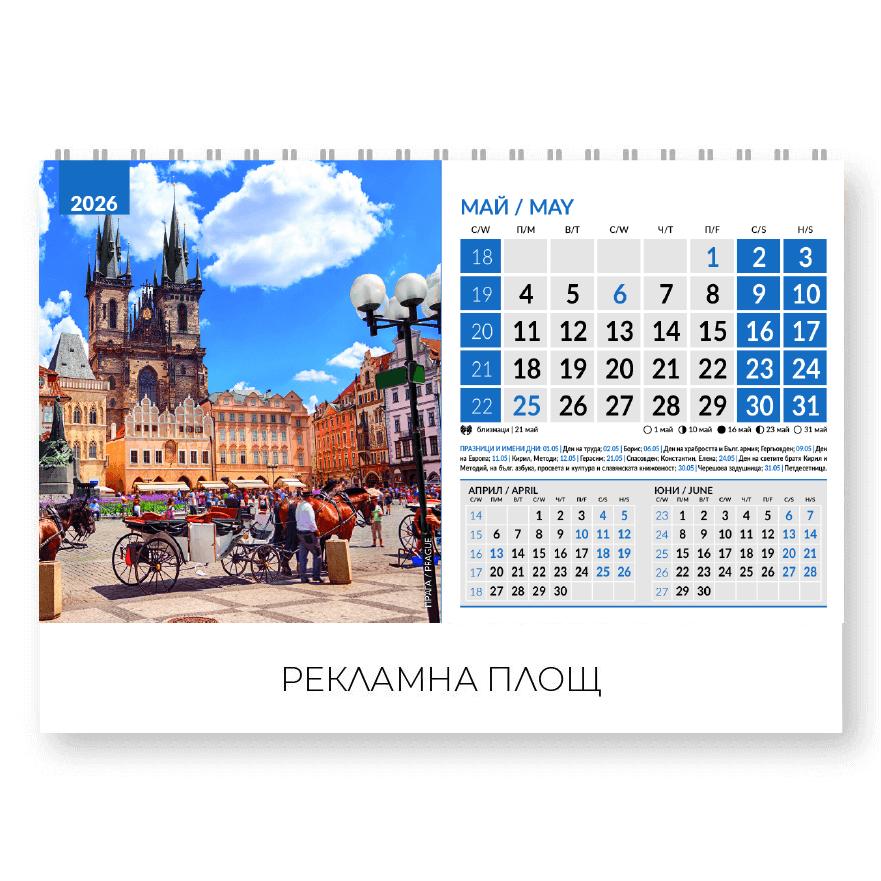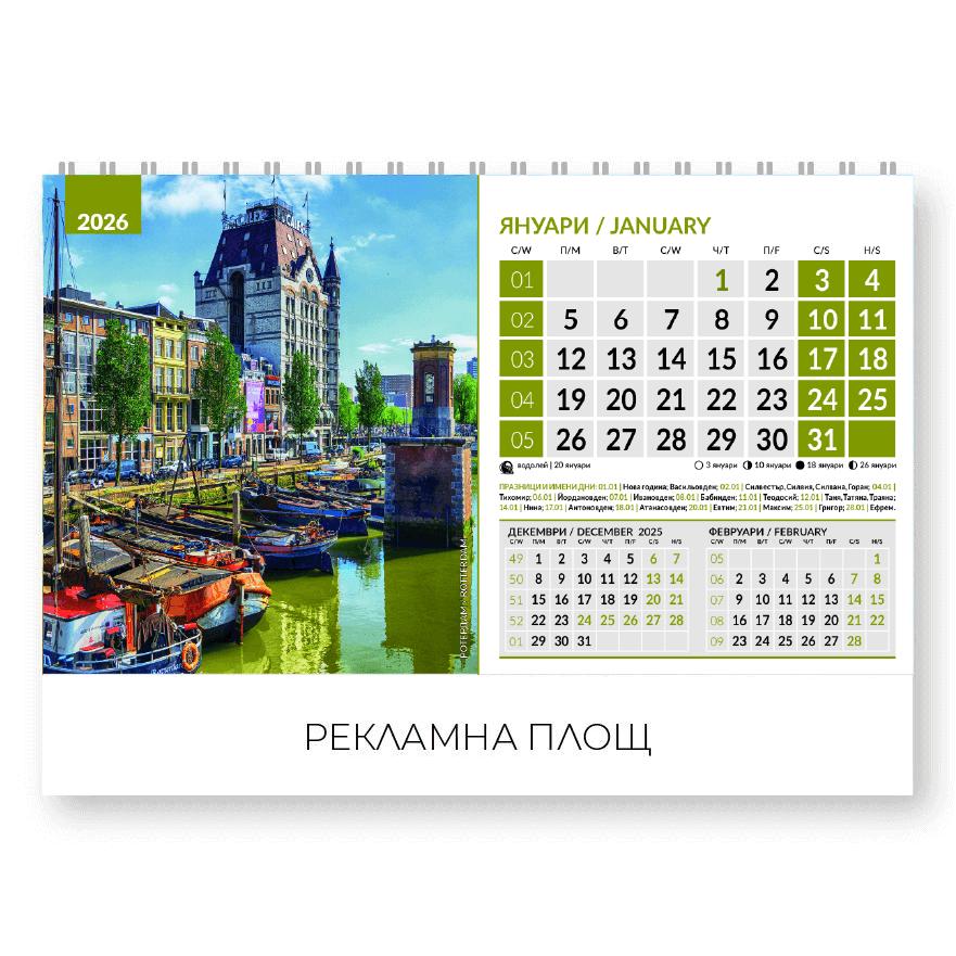 Настолен календар пирамидка Световни градове с готов дизайн е стилен и практичен инструмент за планиране на ежедневните задачи. Календариумът е на два езика – български и английски, което го прави удобен за международна употреба и лесен за ползване.