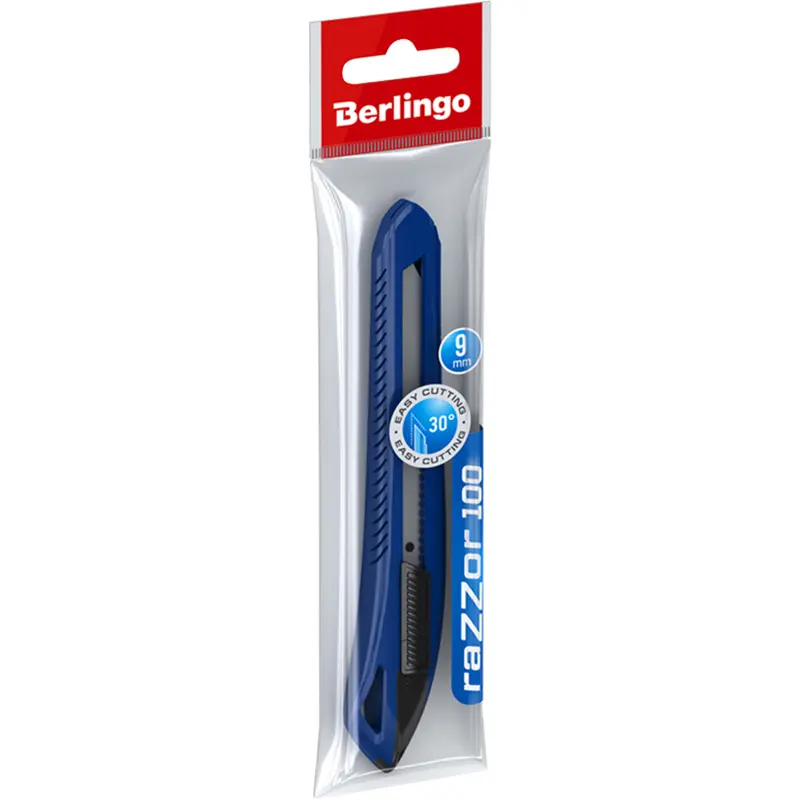 - Офис нож с ръчна система за закрепване на острието с натискане и заключване