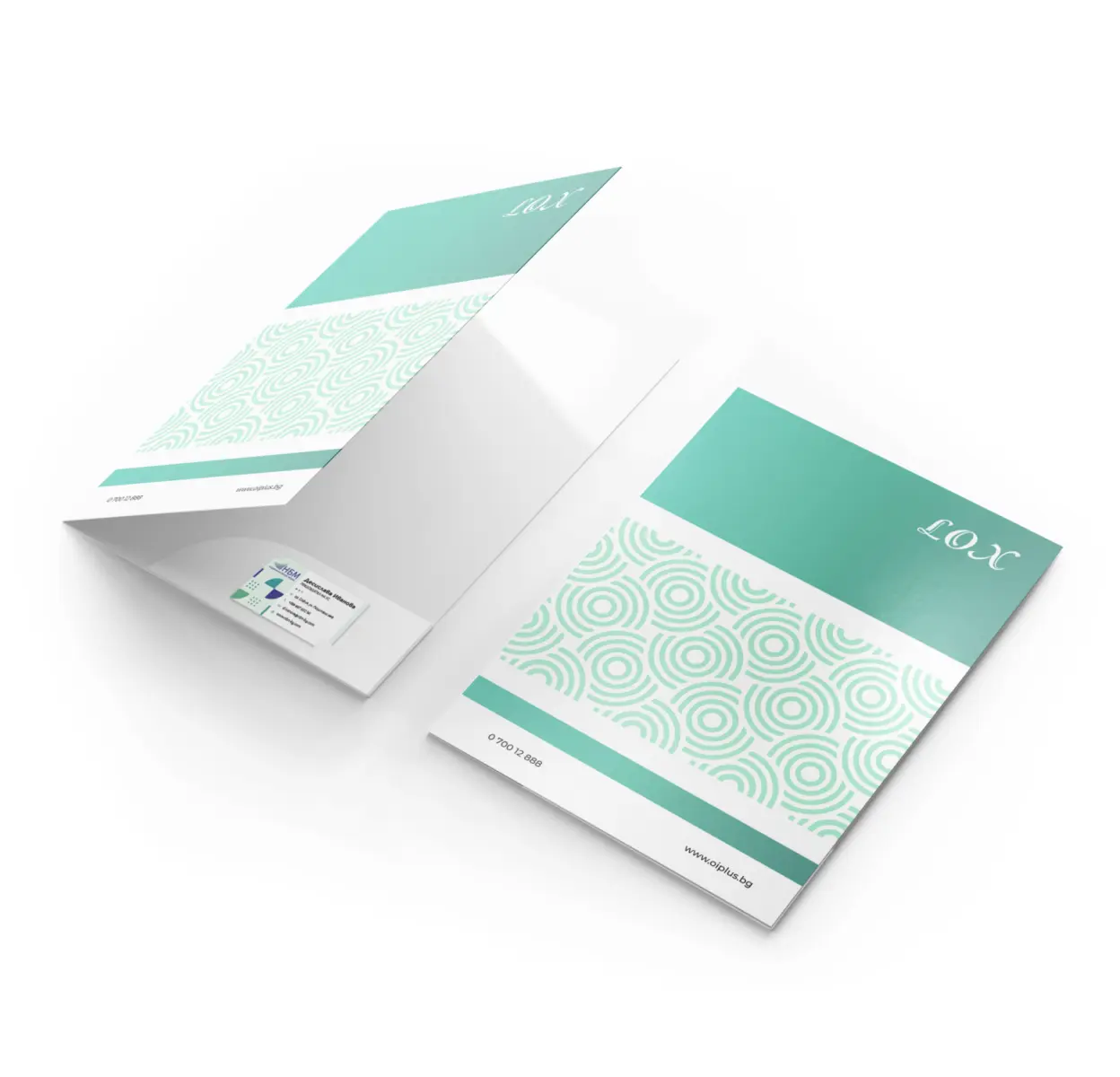 Подарете на документите си професионален вид с персонализирани папки с джоб, изработени по наша щанца и брандирани изцяло по Ваш дизайн. Идеално решение за презентации, оферти, конференции, събития и ежедневна офис употреба. Предлагаме печат по индивидуален проект - Вашето лого, визия и корпоративност, както и формат по стандартна щанца – оптимизиран за A4 документи, с удобен вътрешен джоб и място за визитка.