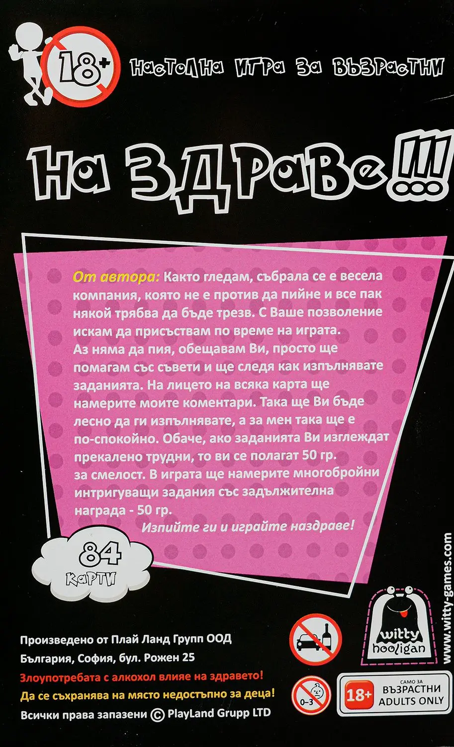 На здраве! е игра за възрастни над 18 години от серията Witty Hooligan. В нея играчите трябва да следват заданията от картите, които теглят от тестето, или да се почерпят с 50 гр.