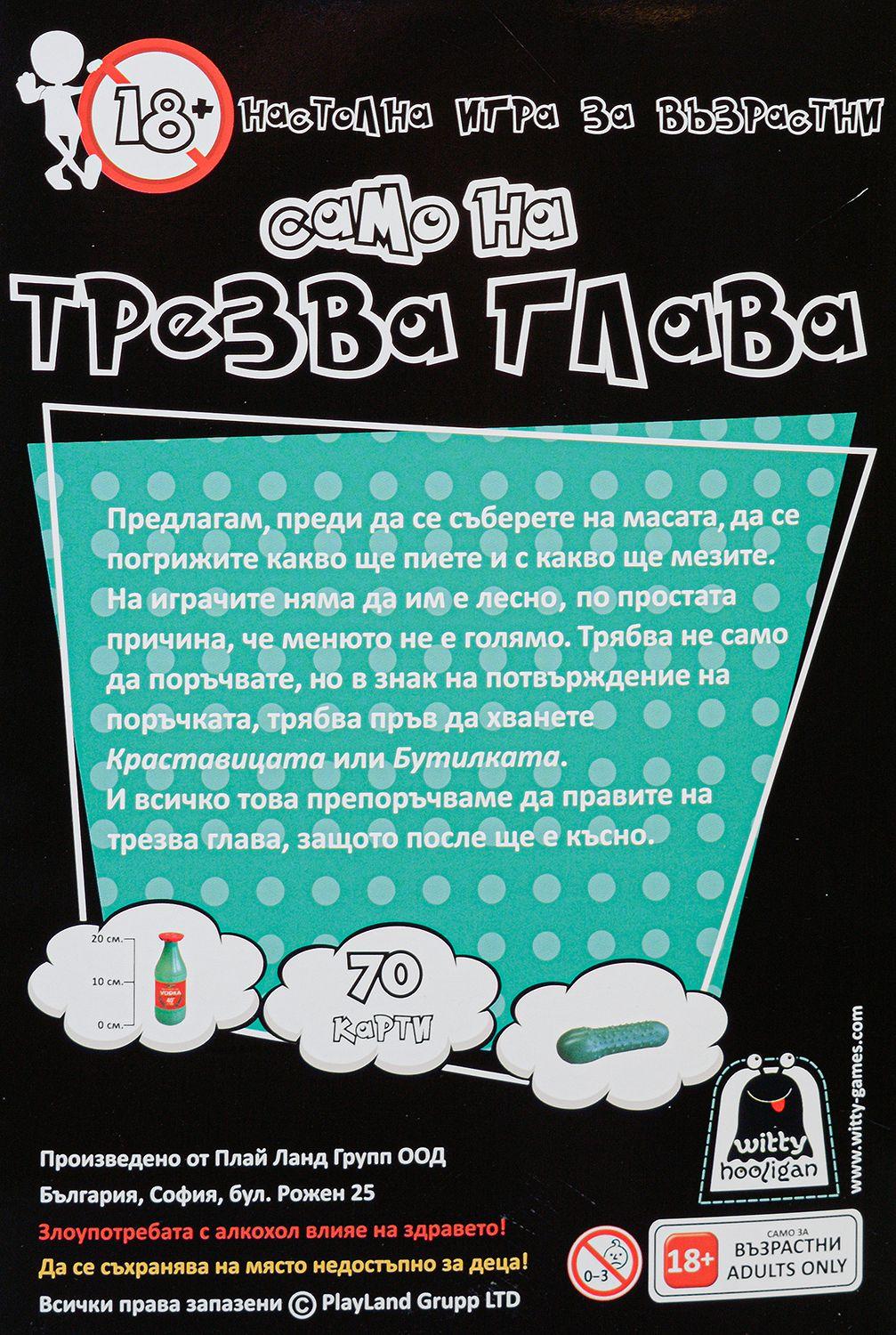 Само на трезва глава е игра за възрастни над 18 години от серията Witty Hooligan. В нея играчите правят поръчки за храна и питиета, след което трябва бързо да грабнат един от двата предмета, за да получат поръчката си.