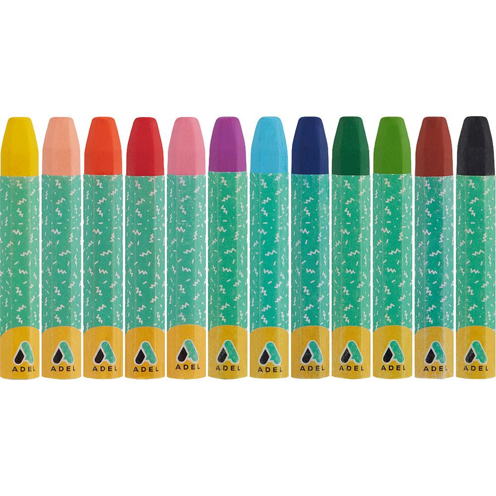 Пастели Adel 12 цвята са класически маслени пастели в шестоъгълна форма, подходяща и за най-малките. Кутията е с цели 12 различни цвята, които да направят рисунките ви шарени и искрящи. Можете да рисувате върху хартия, дърво, платно или различни повърхности по ваше желание.