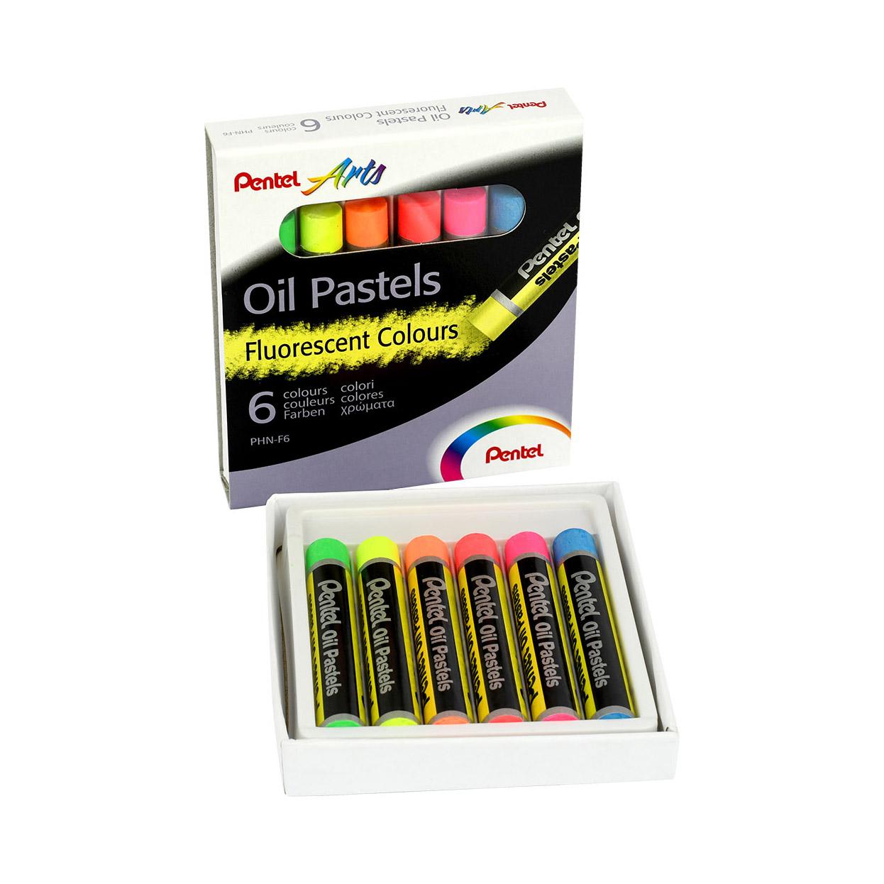 Пастели Pentel 6 цвята в ярки флуорисцентни цветове. Пастелите са с чудесна покривност и устойчивост на влага и триене.