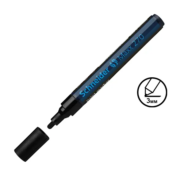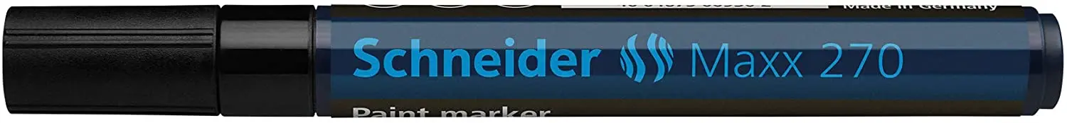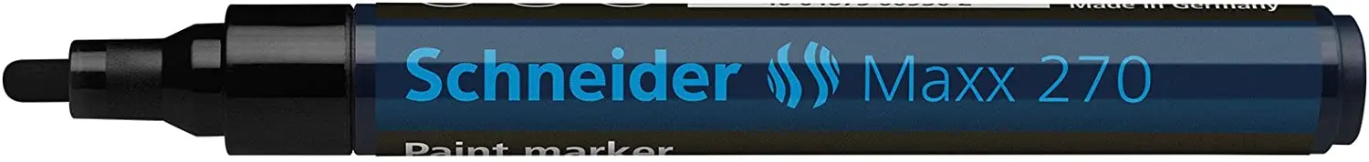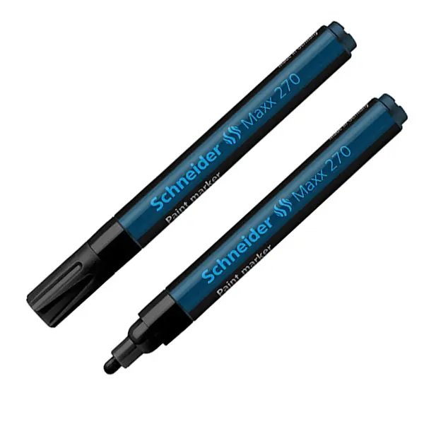 Перманентен лаков маркер Schneider Maxx 270 черен е подходящ за писане върху картон, хартия, пластмаса, стъкло, метал и други. Устойчив е на топлина, абразиви и измиване.