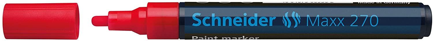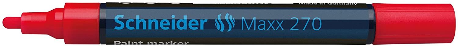 Перманентният лаков маркер Schneider Maxx 270 червен е подходящ за писане върху картон, хартия, пластмаса, стъкло, метал и други. Устойчив е на топлина, абразиви и измиване.