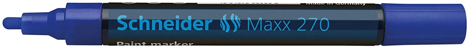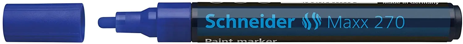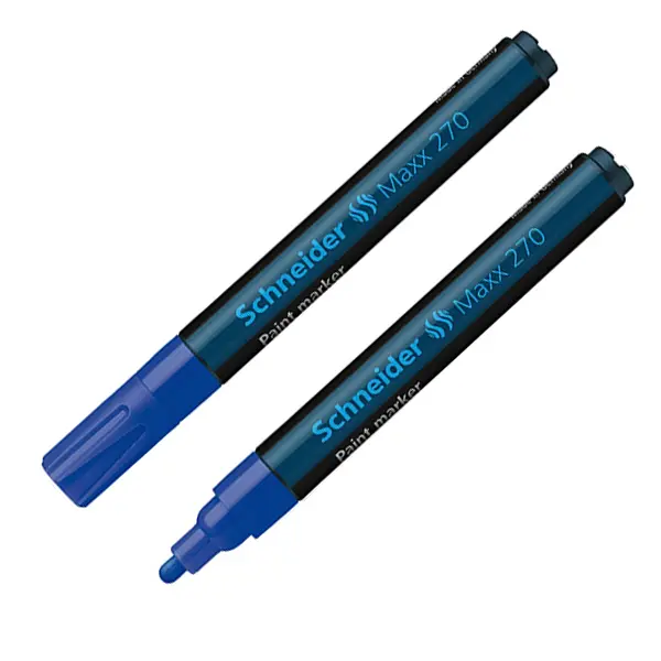 Перманентният лаков маркер Schneider Maxx 270 син е подходящ за писане върху картон, хартия, пластмаса, стъкло, метал и други. Устойчив е на топлина, абразиви и измиване.