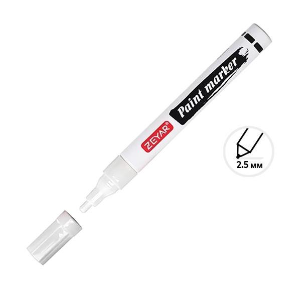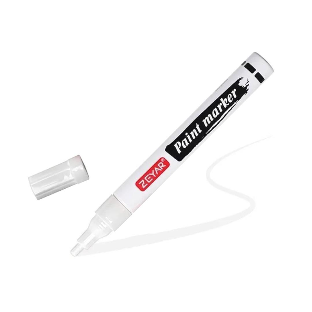 Перманентен лаков маркер Zeyar бял e идеален за писане и детайлно рисуване върху стъкло, пластмаса, метал, фолио, гума и друга повърхности. Запазва цвета си независимо от този на повърхността, върху която се използва. Мастилото му е бързосъхнещо, непрозрачно, на маслена основа. Нетоксично, водоустойчиво с дълготраен ефект.