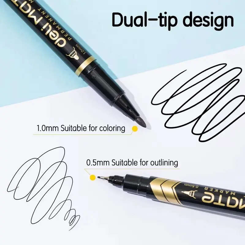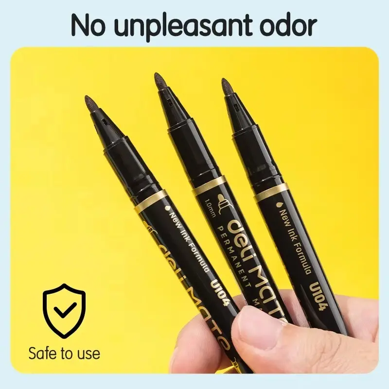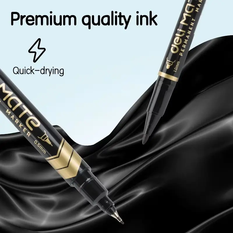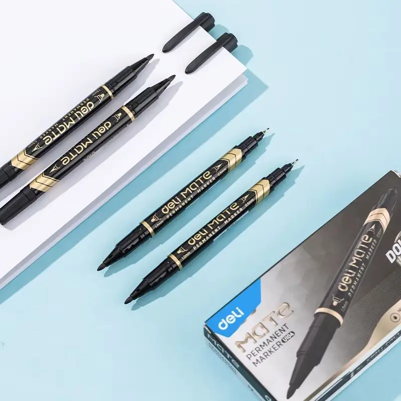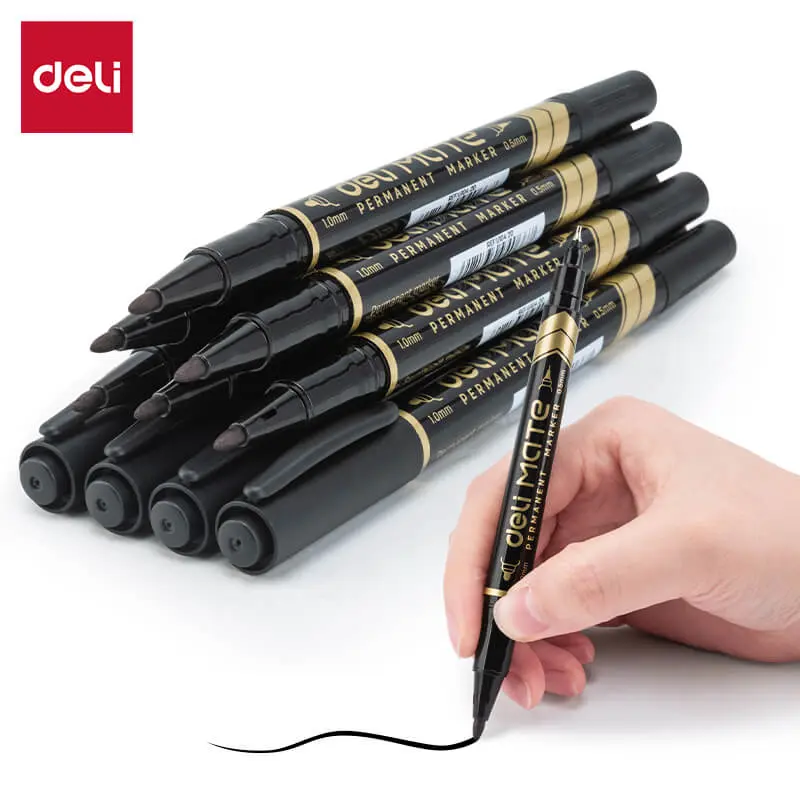 Перманентен маркер Deli двувърх с два размера на писане за прецизност и гъвкавост. Идеален за професионална и творческа употреба.
