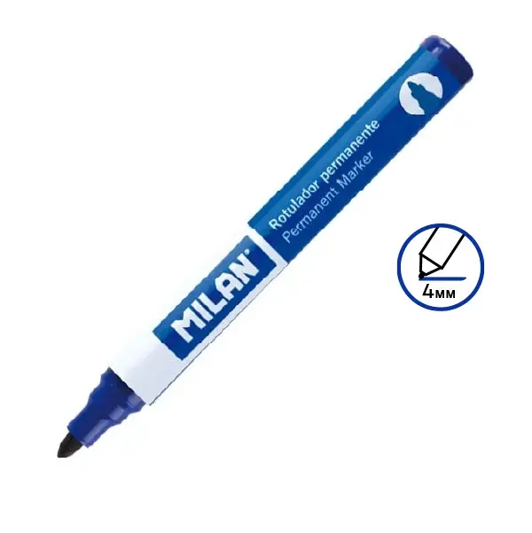 Перманентен маркер Milan син е идеален за подчертаване, водене на записки и трайно маркиране върху различни повърхности. Благодарение на наситения си син цвят, той е отличен избор за коригиране на текстове или за привличане на вниманието към важна информация.