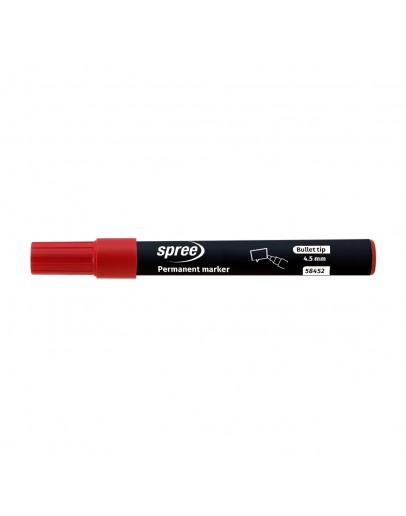 Перманентният маркер Spree в червен цвят е идеален за писане върху различни повърхности като хартия, картон, пластмаса, стъкло, метал и др. Подходящ за офис, училище и домакинството.