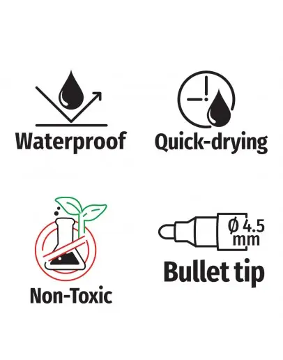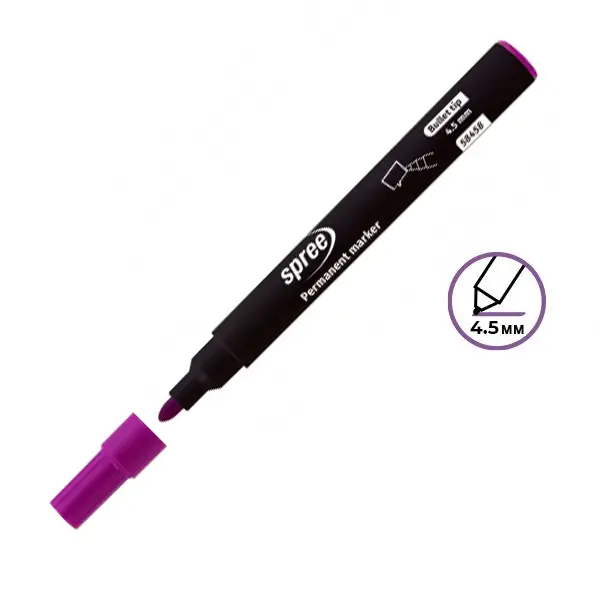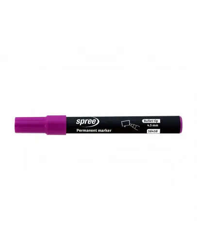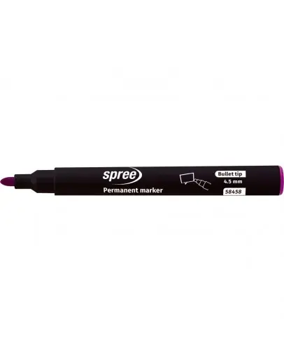 Перманентният маркер Spree в червен цвят е идеален за писане върху различни повърхности като хартия, картон, пластмаса, стъкло, метал и др. Подходящ за офис, училище и домакинството. Виолетовият перманентен маркер Spree е отличен избор за писане и маркиране върху разнообразни повърхности като хартия, картон, пластмаса, метал и стъкло. Подходящ е за ежедневна употреба в офиса, училище или у дома.