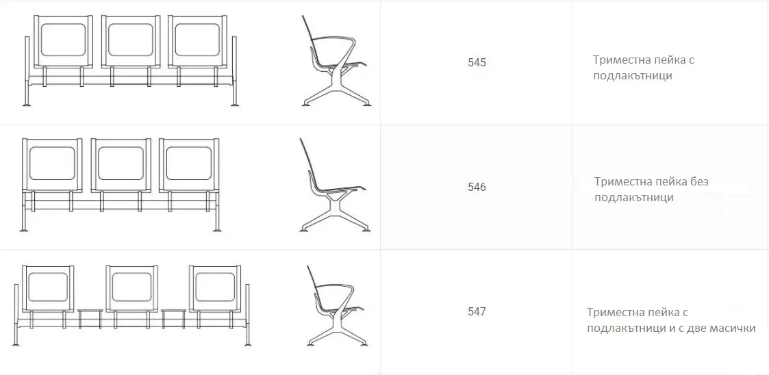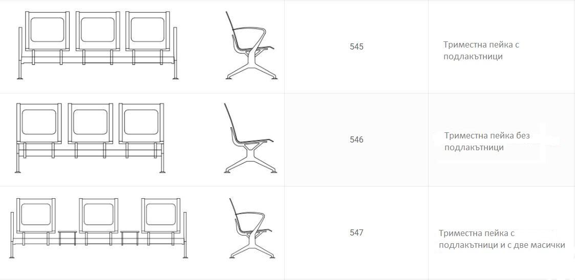 Посетителската пейка ENTE 527 е метална пейка, тапицирана с възглавнички от висококачествена еко кожа. Подходяща е за поставяне в чакални и коридори, както на болнични заведения , така и на хосписи,медицински и стоматологични кабинети.