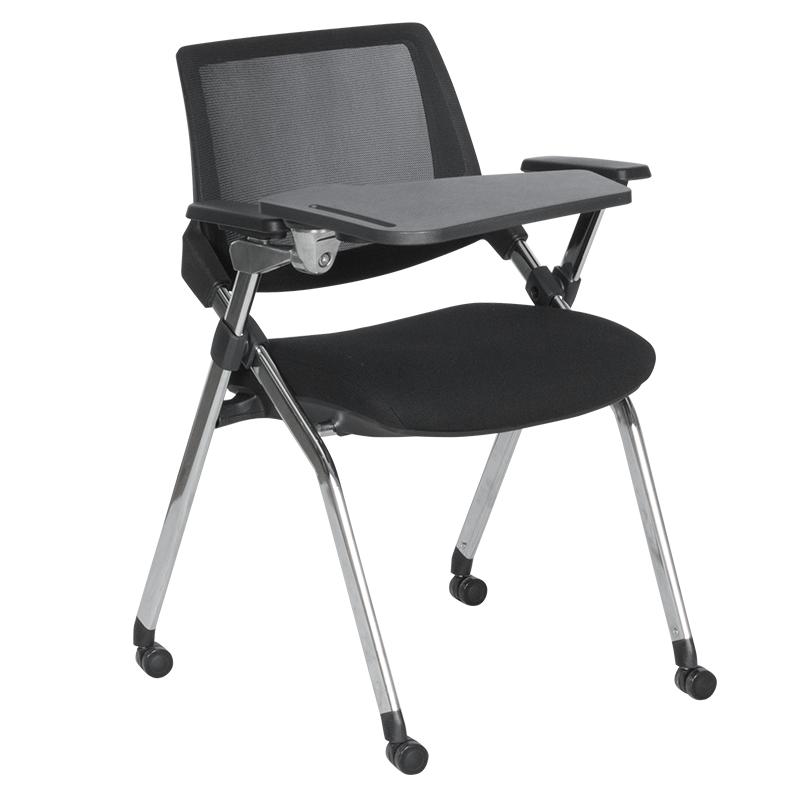 Посетителски стол АЛБА е с хромираната конструкция, гарантираща стабилност на всеки, който седне на него. Седалката е облечена в приятна на допир дамаска, а облегалката е изработена от висококачествена мрежа, която позволява циркулация на въздуха. Този посетителски стол има вградена подвижна маса, затова е подходящ за зали за събития, конференции, лекции и други.