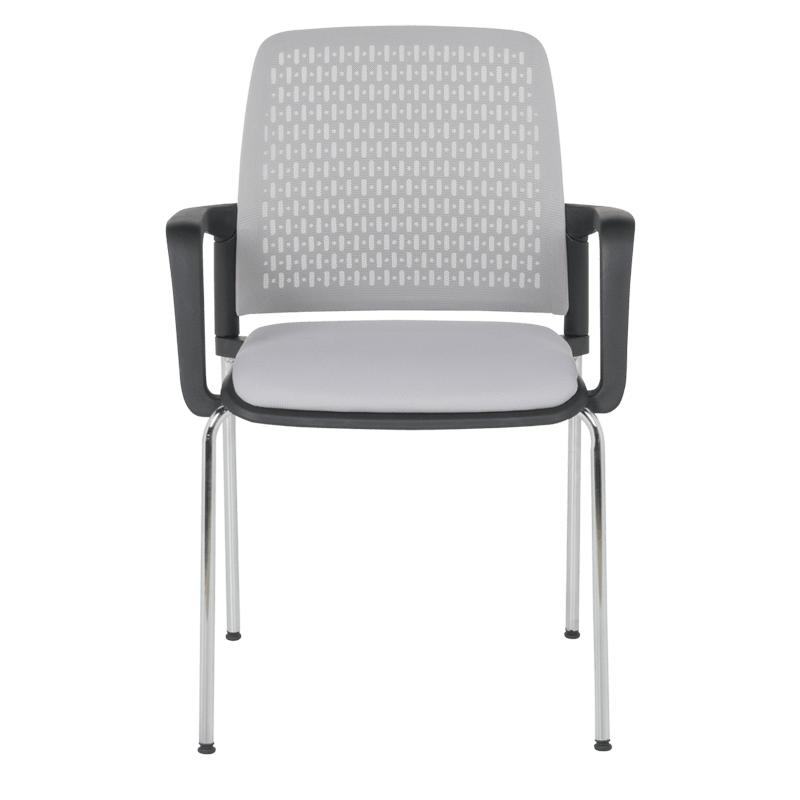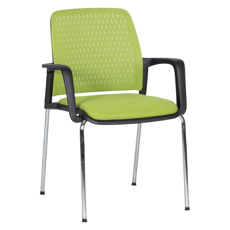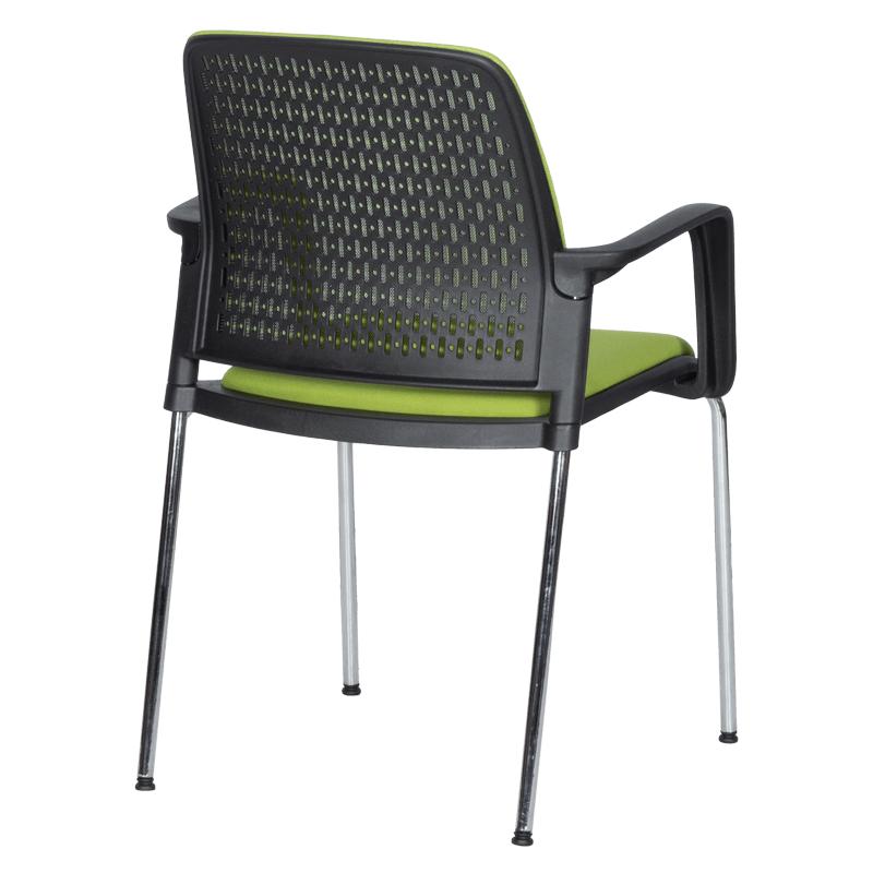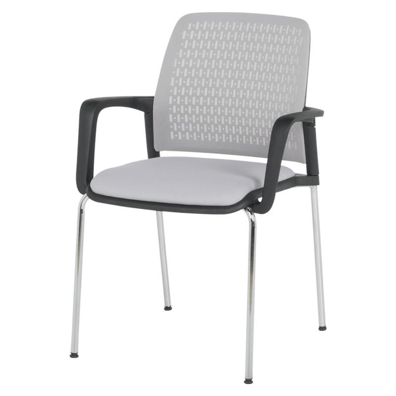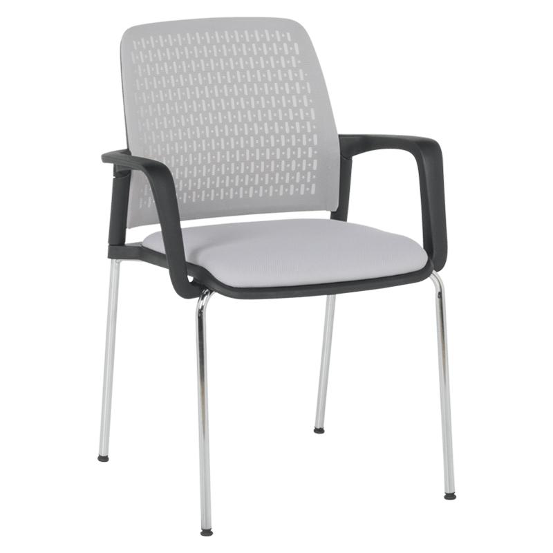 Посетителски стол КАВО е елегантен и устойчив модел, подходящ за всяка офис среда. Столът разполага с хромирана метална основа, тапицирана седалка и вентилирана облегалка, подсилена с полипропилен. Фиксираните подлакътници осигуряват допълнителен комфорт, а възможността за стифиране улеснява съхранението и спестява място.