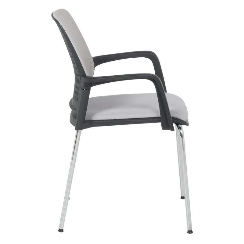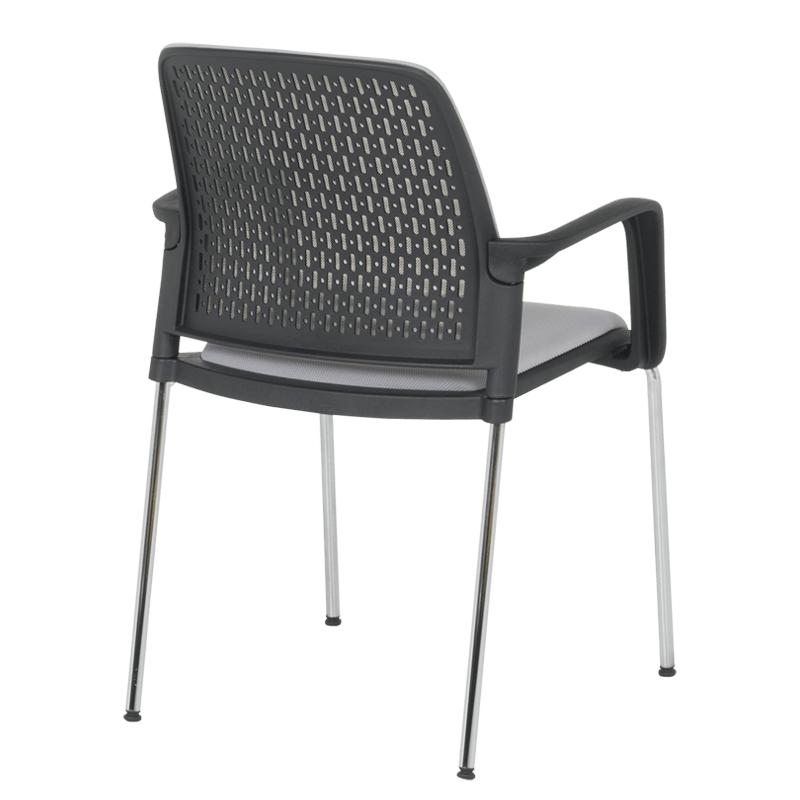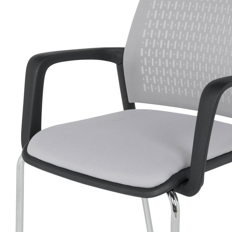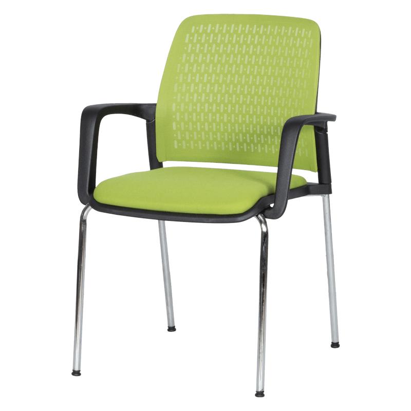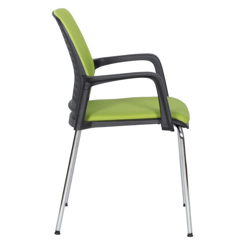 Посетителски стол КАВО е елегантен и устойчив модел, подходящ за всяка офис среда. Столът разполага с хромирана метална основа, тапицирана седалка и вентилирана облегалка, подсилена с полипропилен. Фиксираните подлакътници осигуряват допълнителен комфорт, а възможността за стифиране улеснява съхранението и спестява място.
