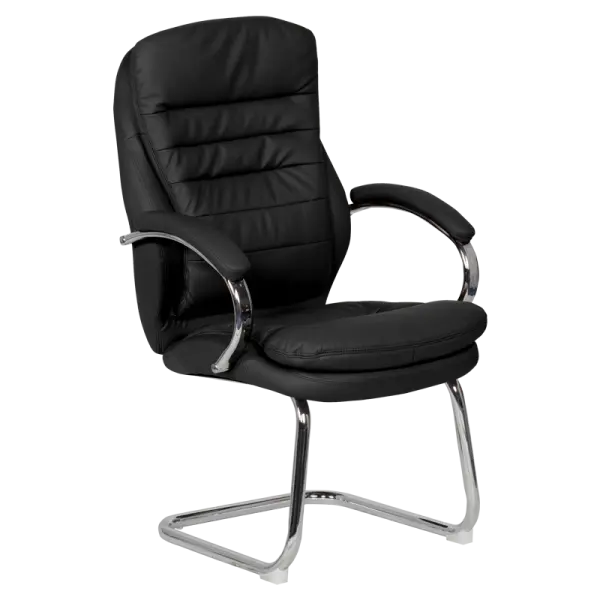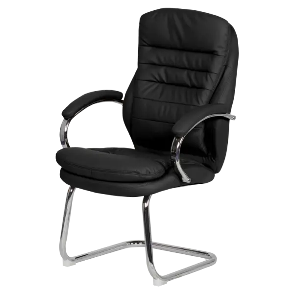 Посетителски стол ЛАЗАРИНА е стилен и комфортен офис стол. Изработен е от ефектна комбинация от еко кожа и хром.
