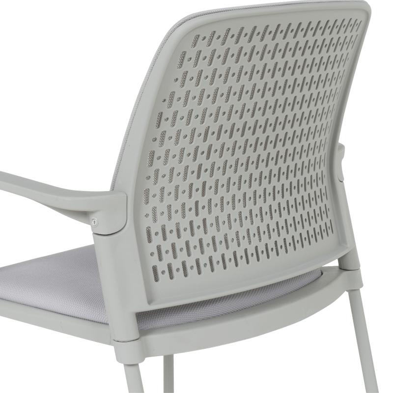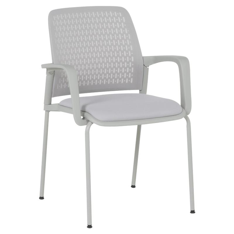 Посетителски стол ЛИМБО е стилен и надежден избор за всяко офис пространство. Моделът разполага с праховоядисана метална основа в сив цвят, тапицирана седалка и вентилирана облегалка, подсилена с полипропилен. Фиксираните подлакътници допринасят за допълнителен комфорт, а възможността за стифиране осигурява лесно съхранение и спестяване на място.