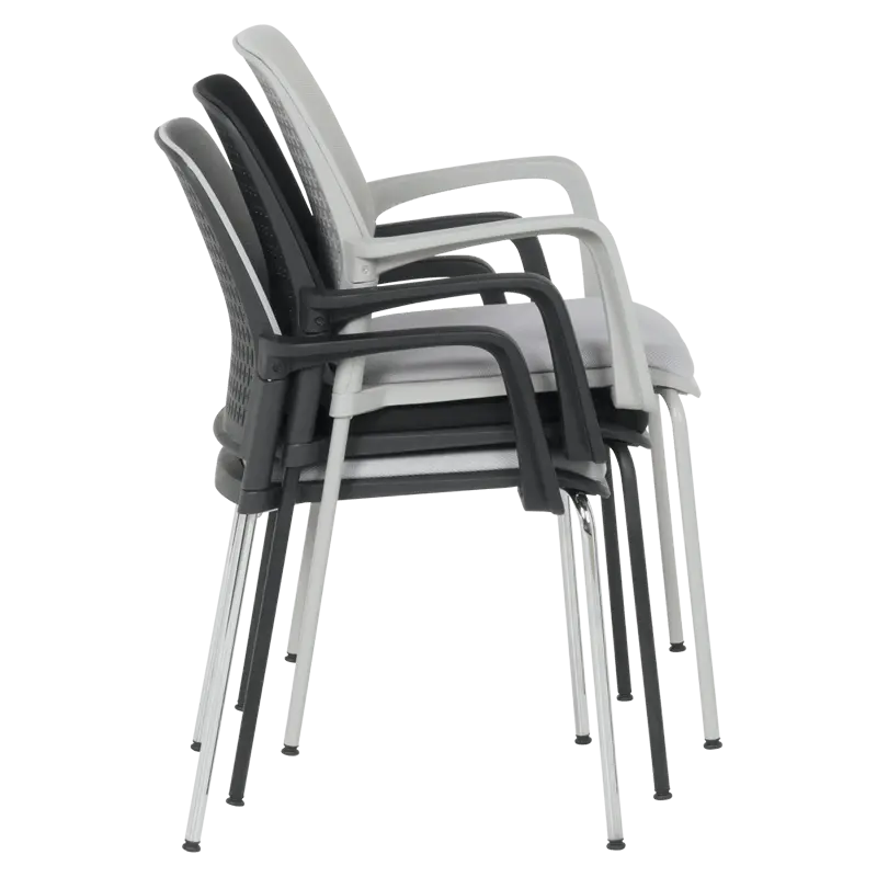лимбоПосетителски стол НИВАРО е стилен и надежден избор за всяко офис пространство. Моделът разполага с праховоядисана метална основа, тапицирана седалка и вентилирана облегалка, подсилена с полипропилен. Фиксираните подлакътници допринасят за допълнителен комфорт, а възможността за стифиране осигурява лесно съхранение и спестяване на място.