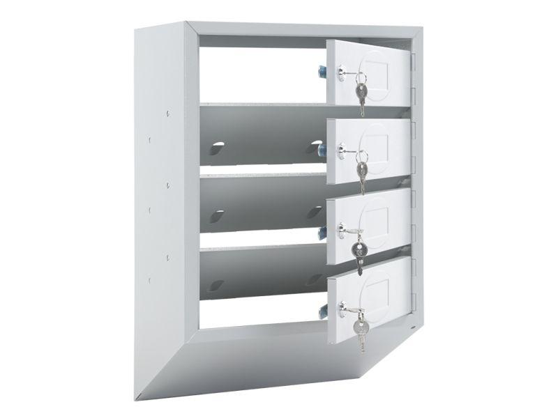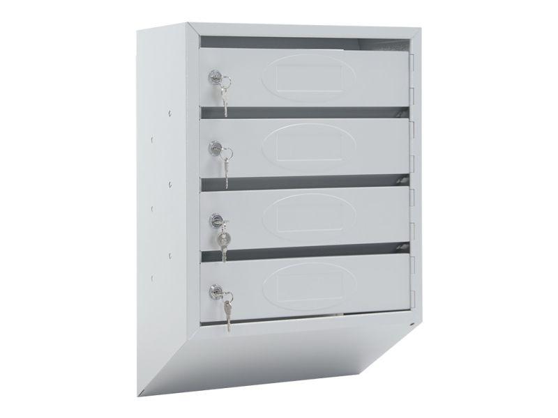 Пощенска кутия PMT PB 4C KL е с 4 клетки с идндивидуално заключване. Вскяка клетка има приспособено място за табелка. Лесно монтиране на стена.