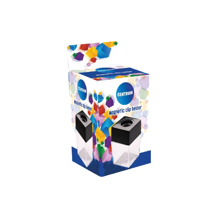 Стилна и практична поставка за кламери с магни. Горната част е снабдена с мощен магнит, който задържа кламерите за лесен достъп. Прозрачната долна част позволява лесно наблюдение на наличността, а компактният дизайн я прави подходяща за всяко бюро.