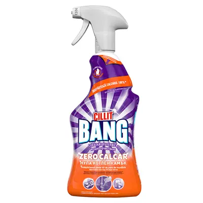 Препарат универсален Cillit Bang 750 мл спрей e мощен почистващ препарат, предназначен за ефективно отстраняване на мазнини, замърсявания, петна и котлен камък. Благодарение на силната си формула, почиства без усилие различни повърхности в дома, оставяйки ги блестящи и свежи.