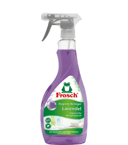 Препарат универсален Frosch 500 мл спрей е мощен почистващ препарат, предназначен за всякакви гладки повърхности, метал, стъкло, мрамор и акрил. Може да се използва и върху дърво с восъчно или лаково покритие. Мощната формула с био спирт гарантира искряща чистота и има бързо и ефективно действие. Има бързо действие и не съдържа микропластмаса, EDTA, парабени и субстанции на животинска основа. Елиминира неприятните миризми и оставя свеж аромат. Опаковката е произведена от 100% рециклируема пластмаса.