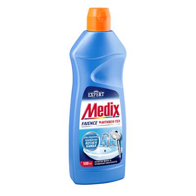 Препаратът Medix е почистващ гел за фаянс и хромирани повърхности, който осигурява отлично почистване на всяко замърсяване. Препаратът помага при петна от ръжда, котлен камък и сапунени утайки, почиствайки до блясък повърхностите.