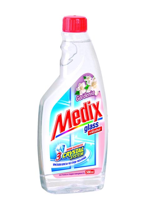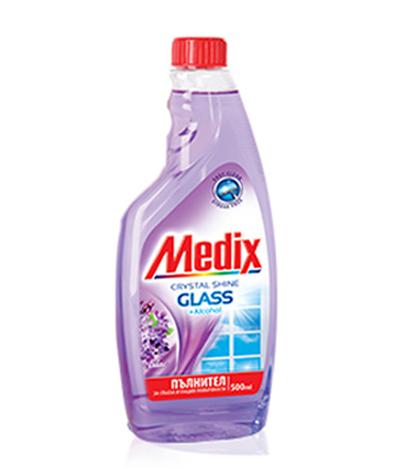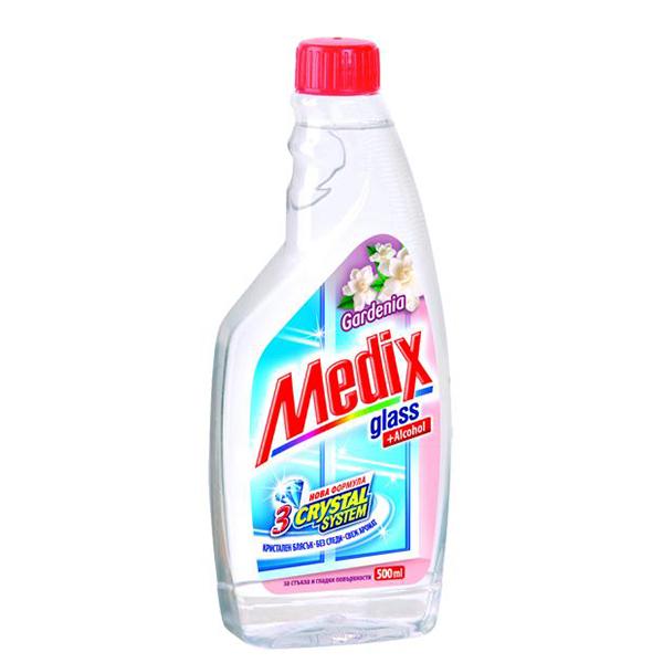 Препаратът за стъкло Medix пълнител 500 мл е подходящ за почистване и полиране на прозорци, стъкла, витрини, огледала, както и за всички гладки повърхности, покрити с емайл, пластмаса, метал и други. За сияен блясък на всички стъклени и гладки повърхности от Медикс са използвали мощна формула с алкохол.
