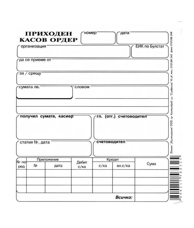 Приходен касов ордер (ПКО) за приемане на суми от каса.
