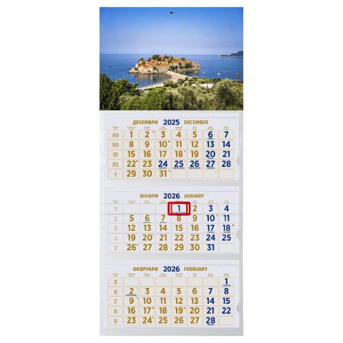 Функционален и елегантен работен календар с три тела и готова цветна глава с природни пейзажи. Класическият дизайн и красивите изображения придават свежест и стил на всяко работно или домашно пространство.