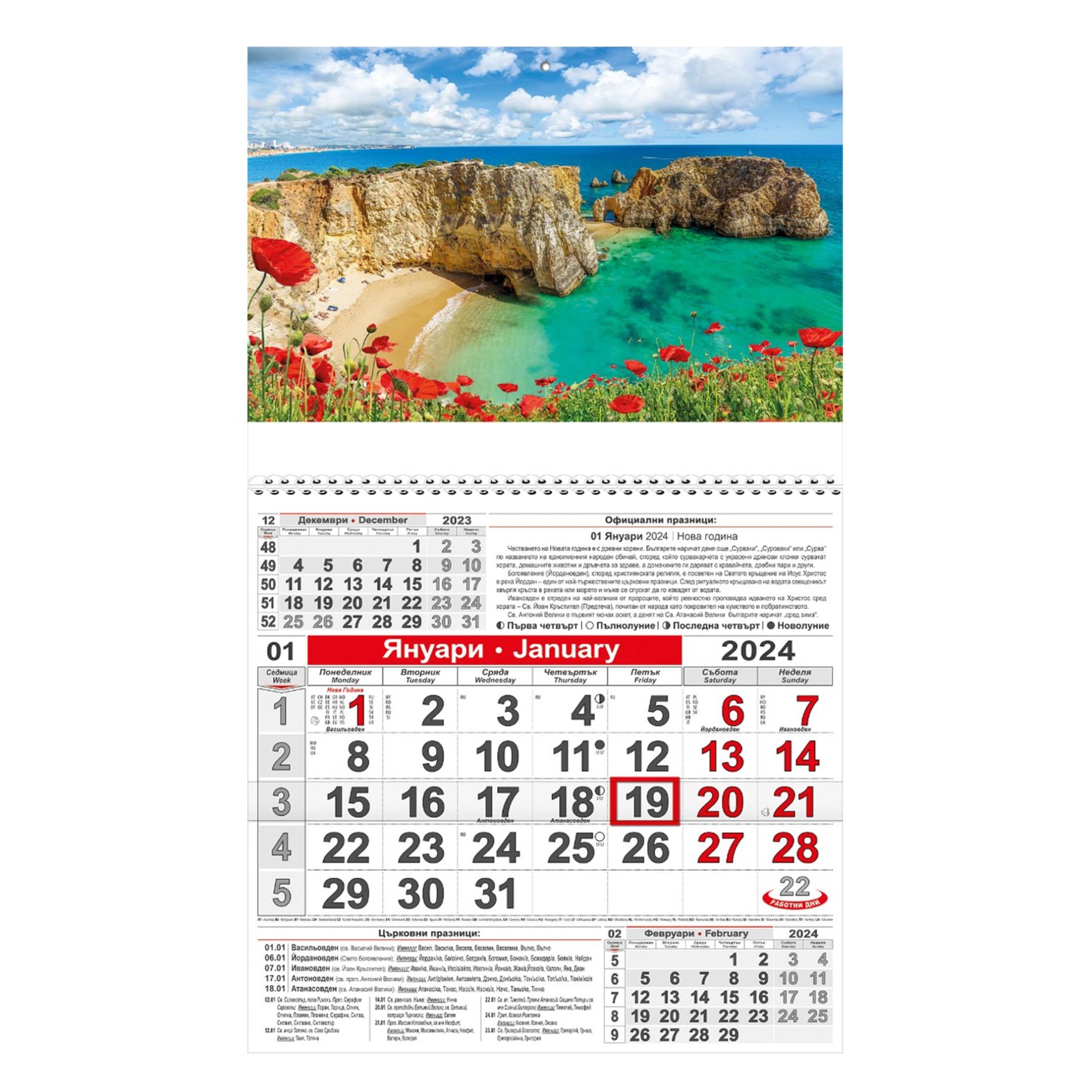 Работен календар КС 1 готова глава №2 е настолен календар с един календариум, предназначен за офис и домашна употреба. Календарът включва календариум на два езика български и английски, което го прави удобен за различни потребители.