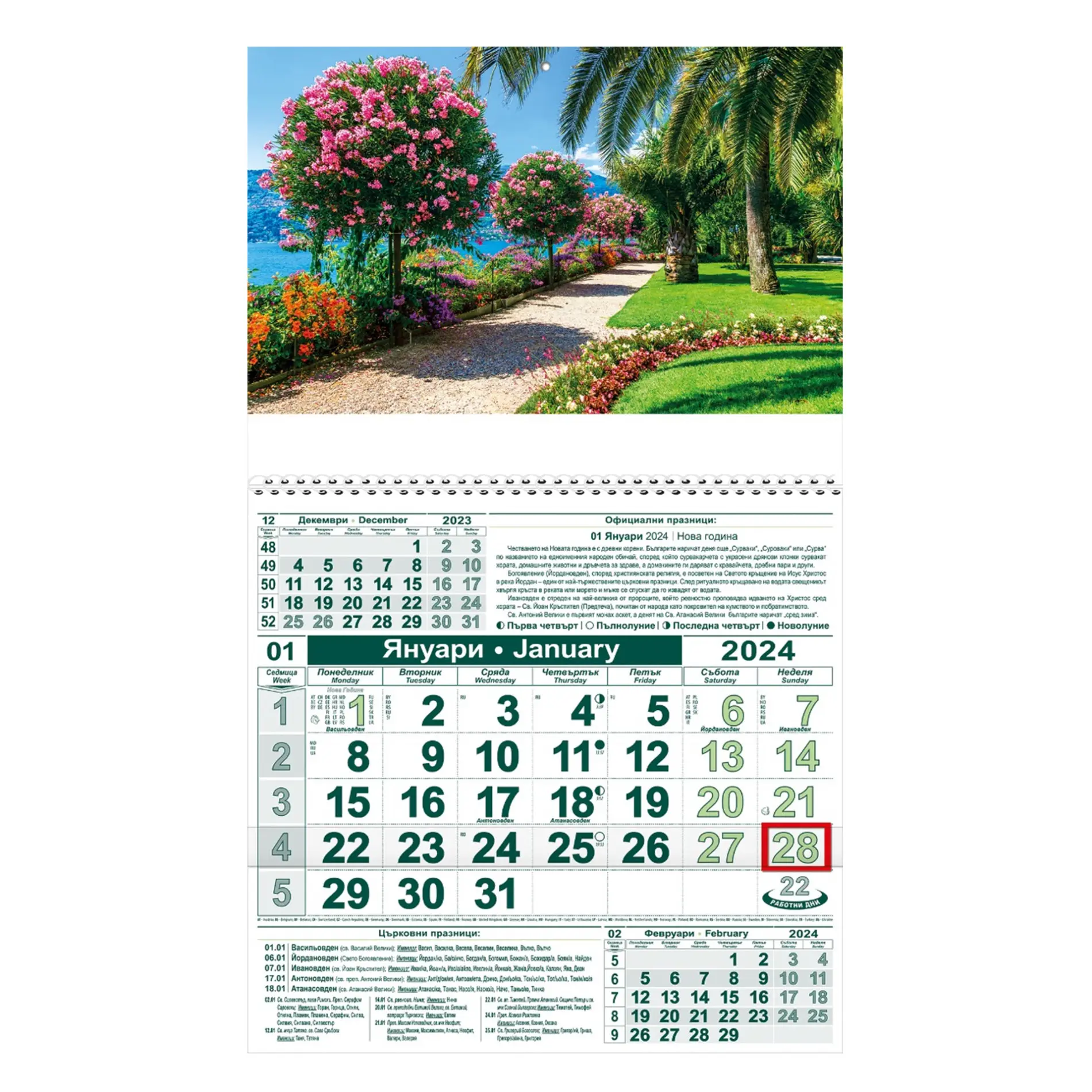 Работен календар КС 1 готова глава №4 е настолен календар с един календариум, подходящ за офиси, дом и корпоративни цели. Календарът съдържа календариум на два езика български и английски, което го прави удобен за различни потребители.