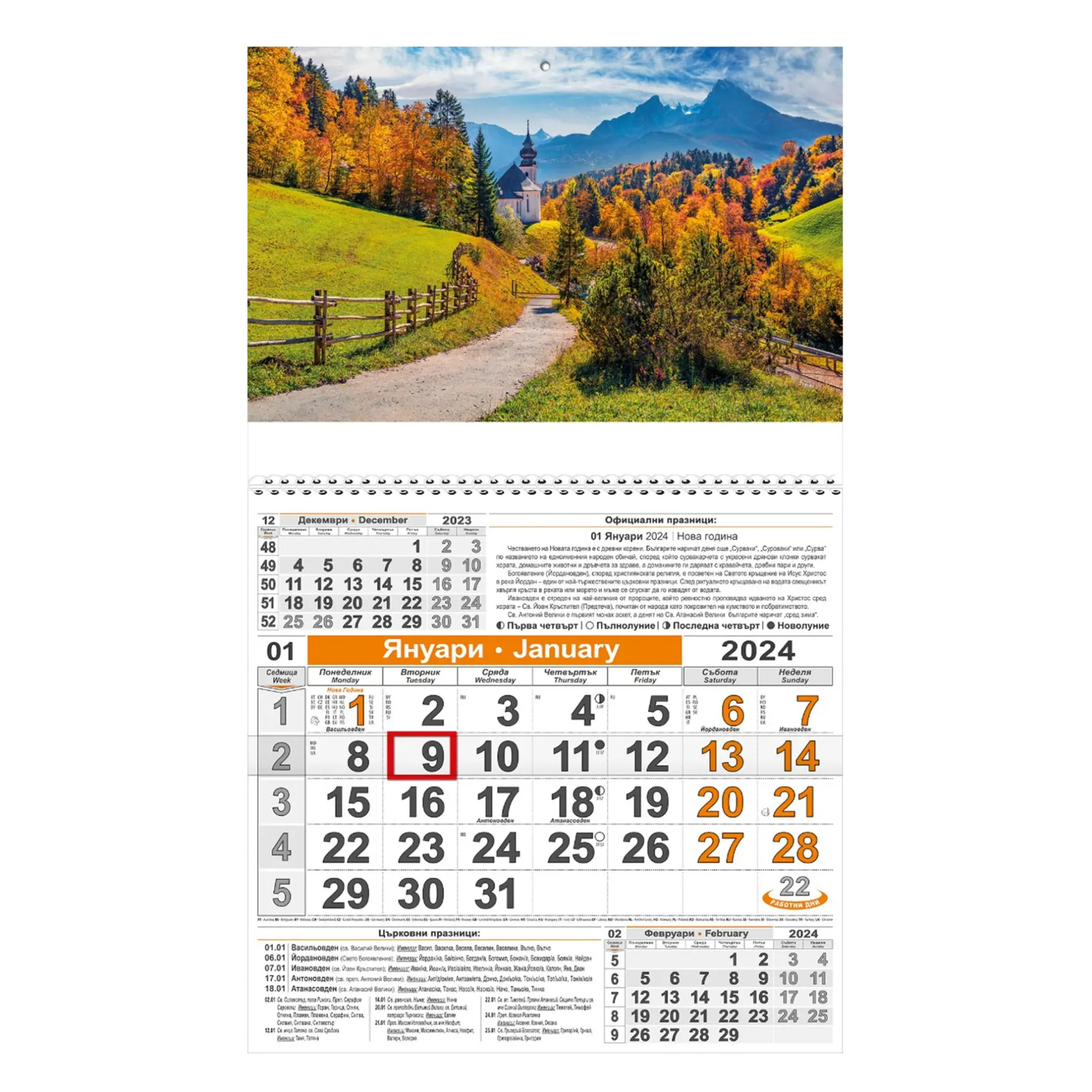 Работен календар КС 1 готова глава №8 е практичен настолен календар с един календариум, подходящ за офиси, дом и корпоративни цели. Календарът съдържа календариум на два езика български и английски, което го прави удобен и универсален за различни потребители.