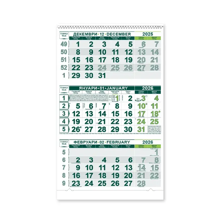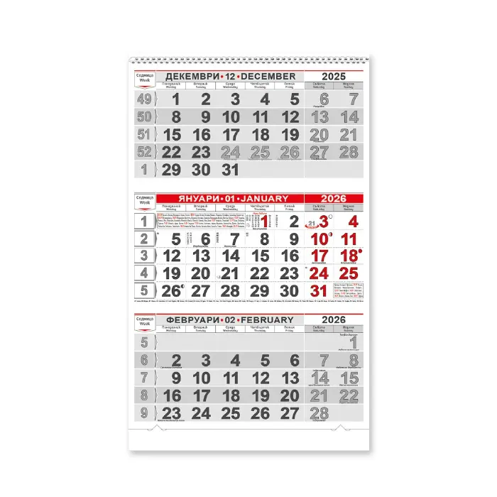 Работен календар КС 2 без глава е компактен и удобен работен календар с изчистен дизайн и ясна структура. Идеален избор за офиса, работното място или дома.Модел КС 2 е без горна глава, което му придава минималистичен и практичен вид..