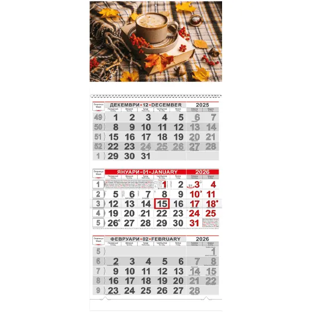 Работен календар КС 2 готова глава №2 с три календариума на два езика. Включва празници, лунни фази, именни дни, зодии и DST. Подходящ за офис и подаръци.
